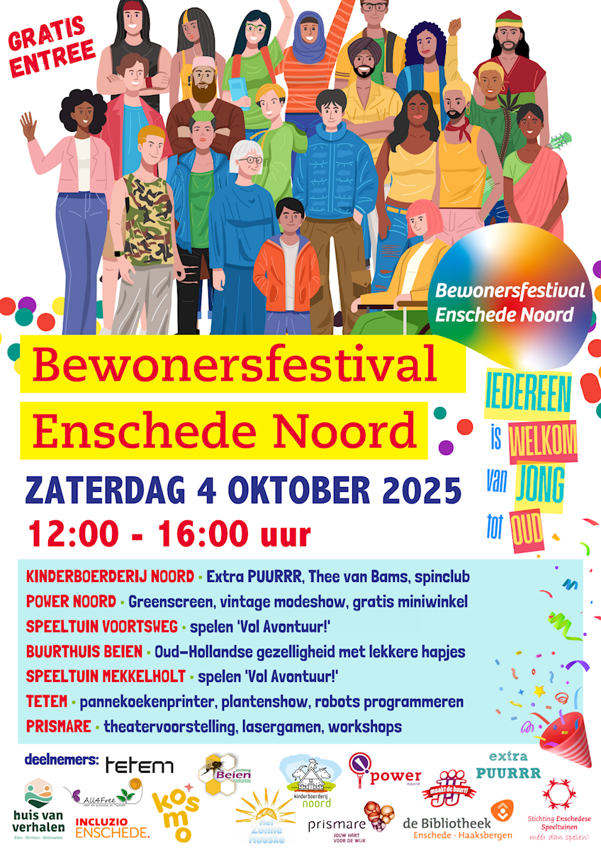 Speeltuin Mekkelholt en Speeltuin Voortsweg zijn ook van de partij op 4 oktober 2025 tijdens het gezellige Bewonersfestival in Enschede Noord.